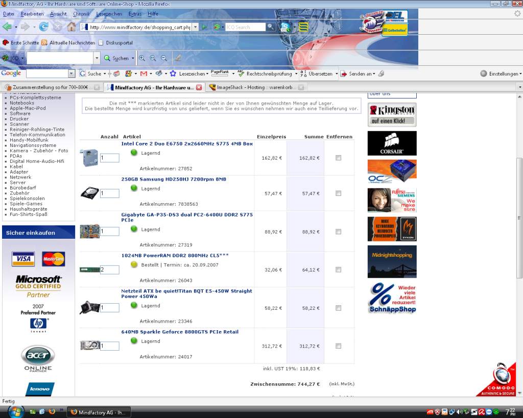 ich wollte einfach mal kurz rumhören was ihr von meiner zusammenstellung haltet ist für einen Kumpel der halt komplett umrüsten will für 700-800€ als shop habe ich hoh genommen wegen der guten Verfügbarkeit, Preisen und weil sie einfach top sind.