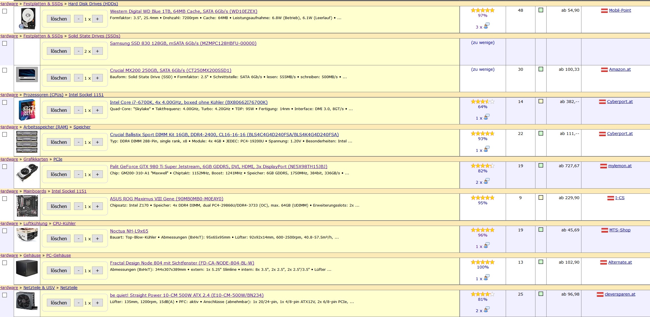 da ich meinen Rechner jetzt möglichst klein, aber schick machen möchte, wollte ich wissen ob meine Zusammenstellung besser sein könnte bzw. passt. Nicht wundern, wenn manche Hardware komisch erscheint. Ich besitze manche Komponenten (2xSamsung SSD 830, Crucial SSD, WD HDD, Palit 980Ti) schon und möchte sie einfach übernehmen.