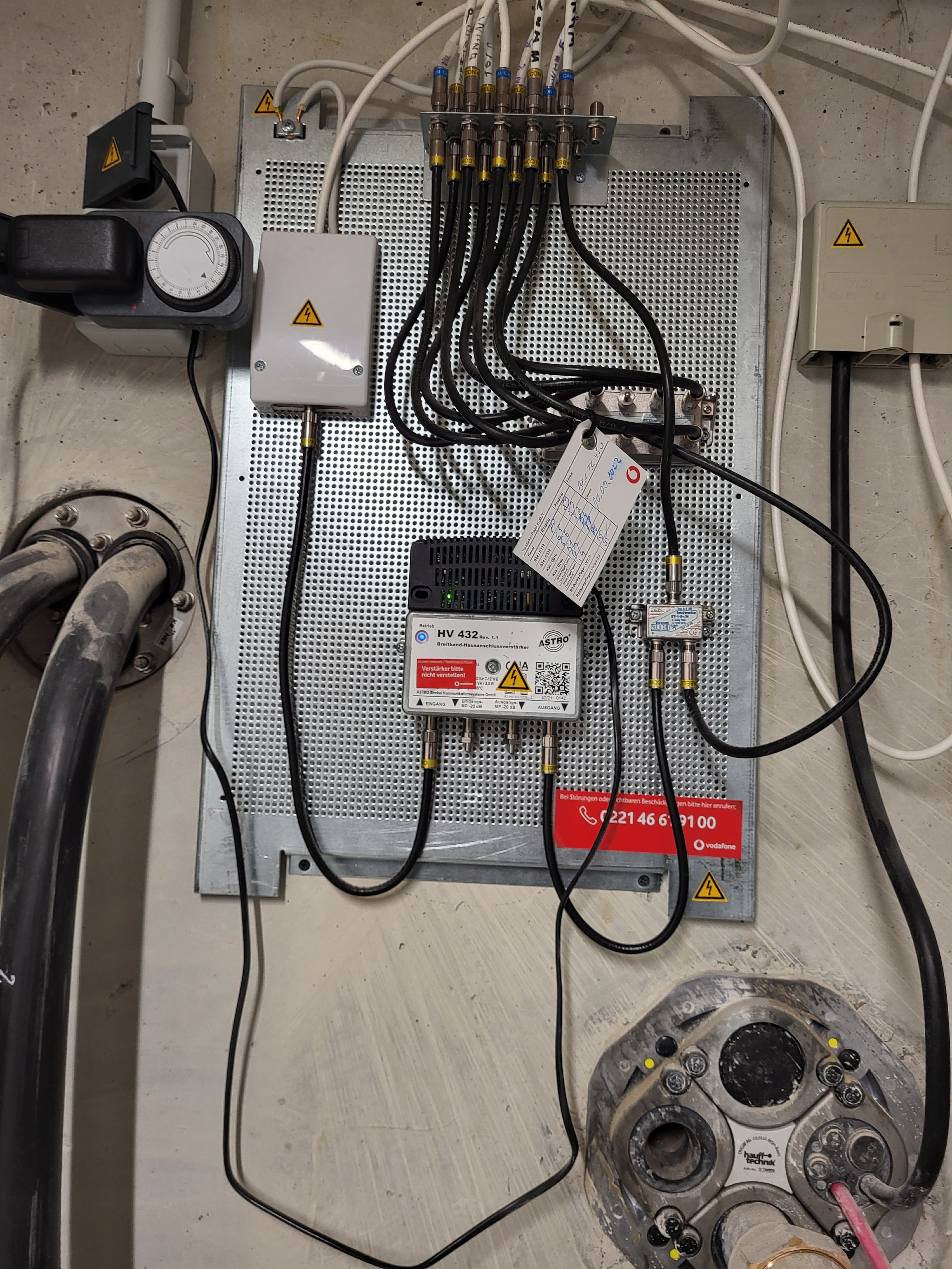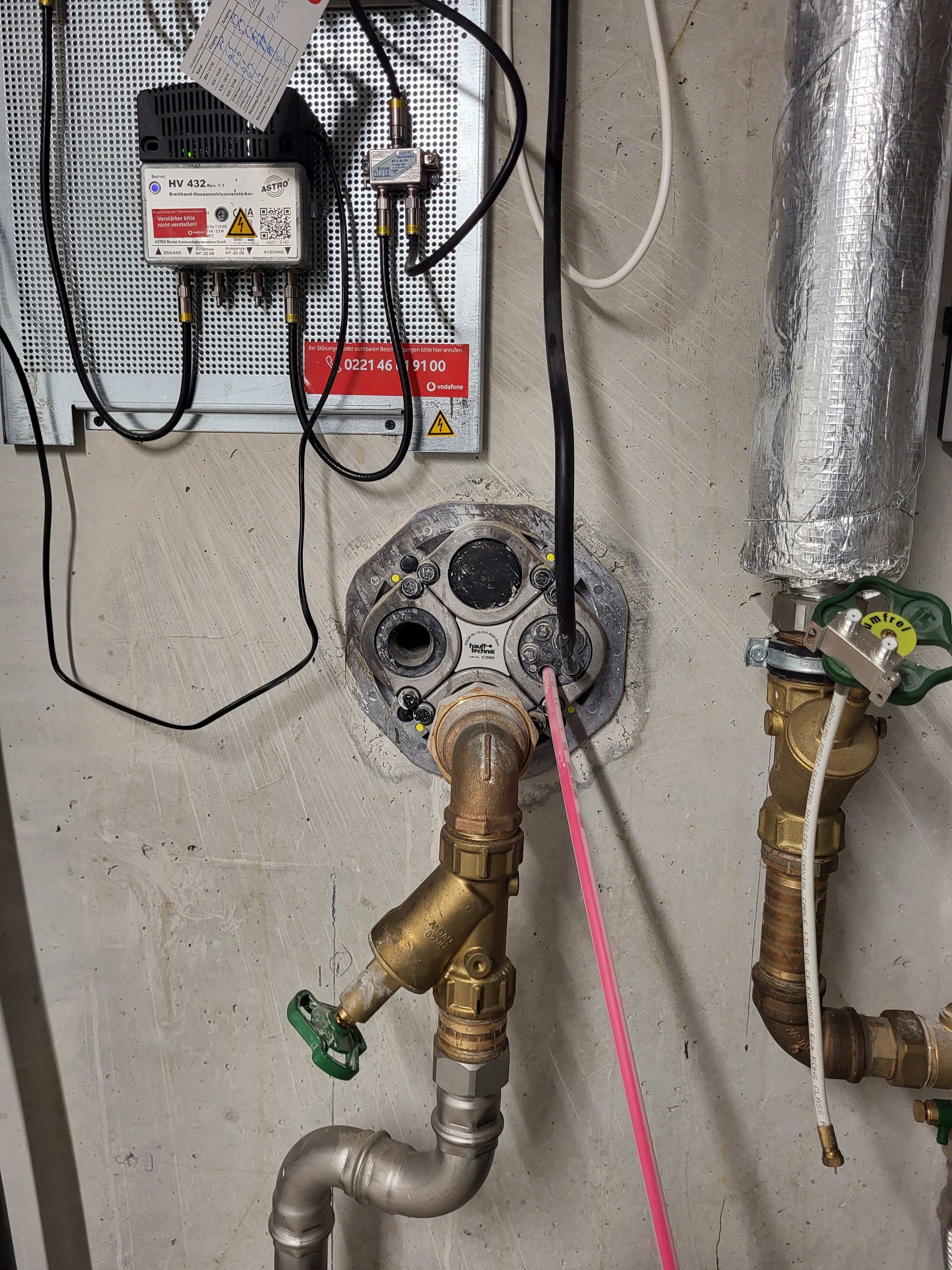 Edit: das rote Kabel unter "Hausanschlüsse" (schätze Glasfaserkabel) ist nirgends angeschlossen sondern baumelt lose vor sich hin