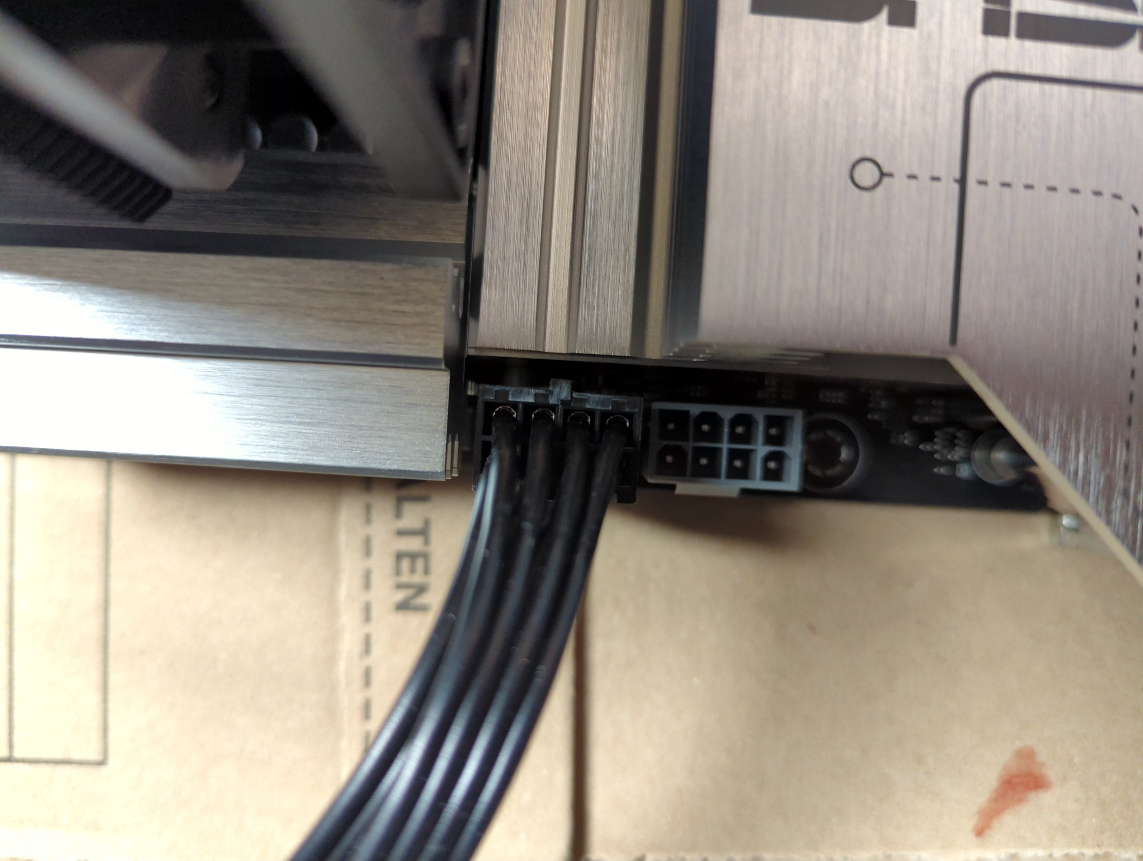 . Ich habe noch einen 4-Pin-Stecker mit „12V“ am Netzteil, bin aber unsicher, ob ich den in die andere CPU-Buchse stecken darf (nicht klar ob EPS oder PCIe)