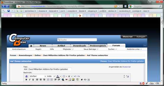 Was den Ressourcenverbrauch angeht so verbraucht mein Firefox mit 17 Plugins den ich nun schon seit Stunden offen habe gerade mal 5MB mehr RAM als dies der Opera der gerade eben frisch installiert und gestartet wurde tut und die CPU Last ist nahezu vollständig identisch und bewegt sich hier auf CB bei beiden zwischen 0 und 10% je nach dem was ich gerade mache. Spürbar ist absolut kein Unterschied zwischen beiden aus zu machen und messbar besteht auch nahezu keiner (bei eher schlechteren Bedingungen für den FireFox). Bei beiden sind 5 Tabs mit unterschiedlichen Seiten von CB (eine davon die Startseite) offen! Also übertreibst du hier vollkommen maßlos was den erhöhten Ressourcenverbraucht durch Plugins angeht...