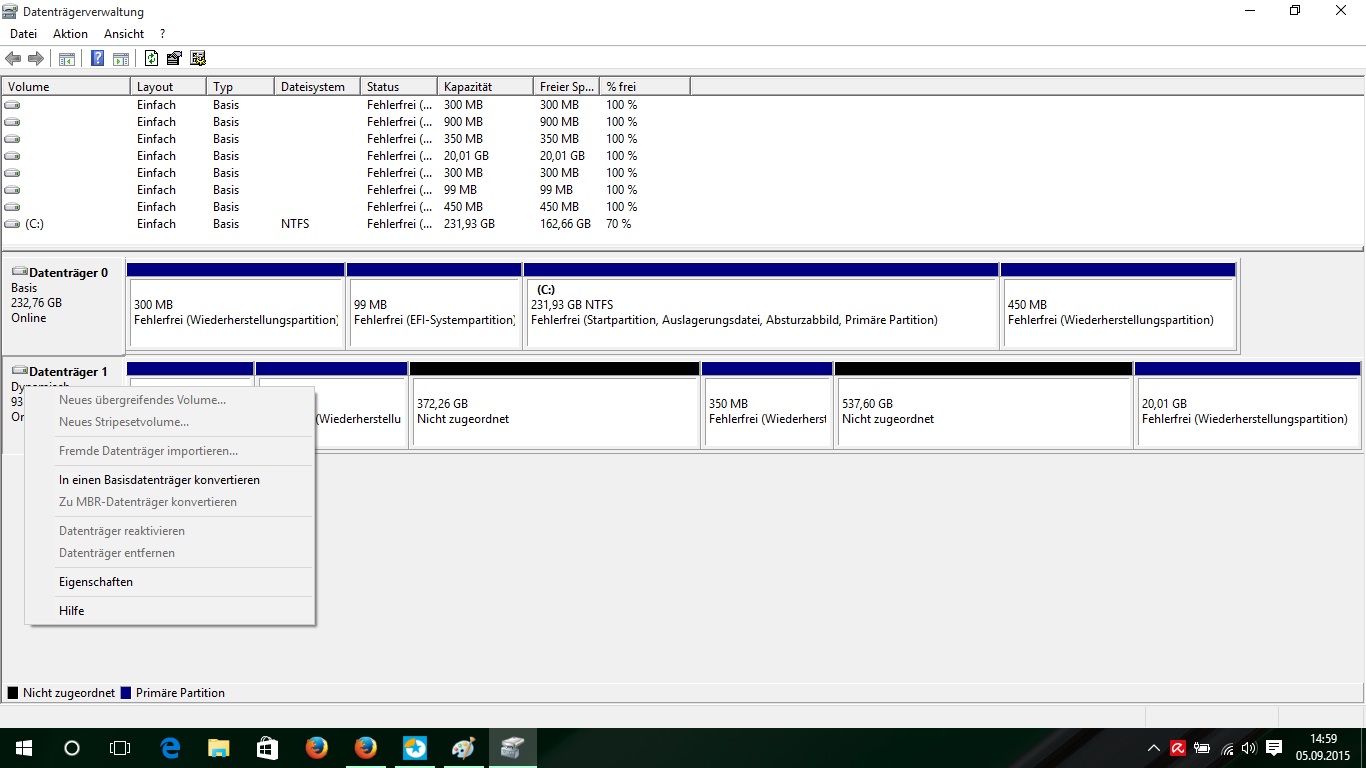 melde mich noch mit einem zweiten Problem. Habe mein Betriebssystem auf ne SSD gepackt und möchte die HDD (1TB) jetzt als Speicher nutzen. Hatte vorher zwei Partionen drauf, habe beide formatiert und versucht eine neue, große zu erstellen. Habe dann gelesen, dass das unter Windows nicht geht und mir Easy US Partition Master geladen, dort kann ich mit den beiden nicht besetzten Partionen aber auch nichts machen.