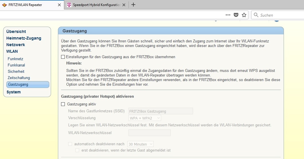 Wenn ich die Fritzbox nur für die Telefonie nutze und den Speedport den Rest machen lasse, misse ich die Gast-WLAN-Funktion der Fritzbox, die für uns essentiell ist.