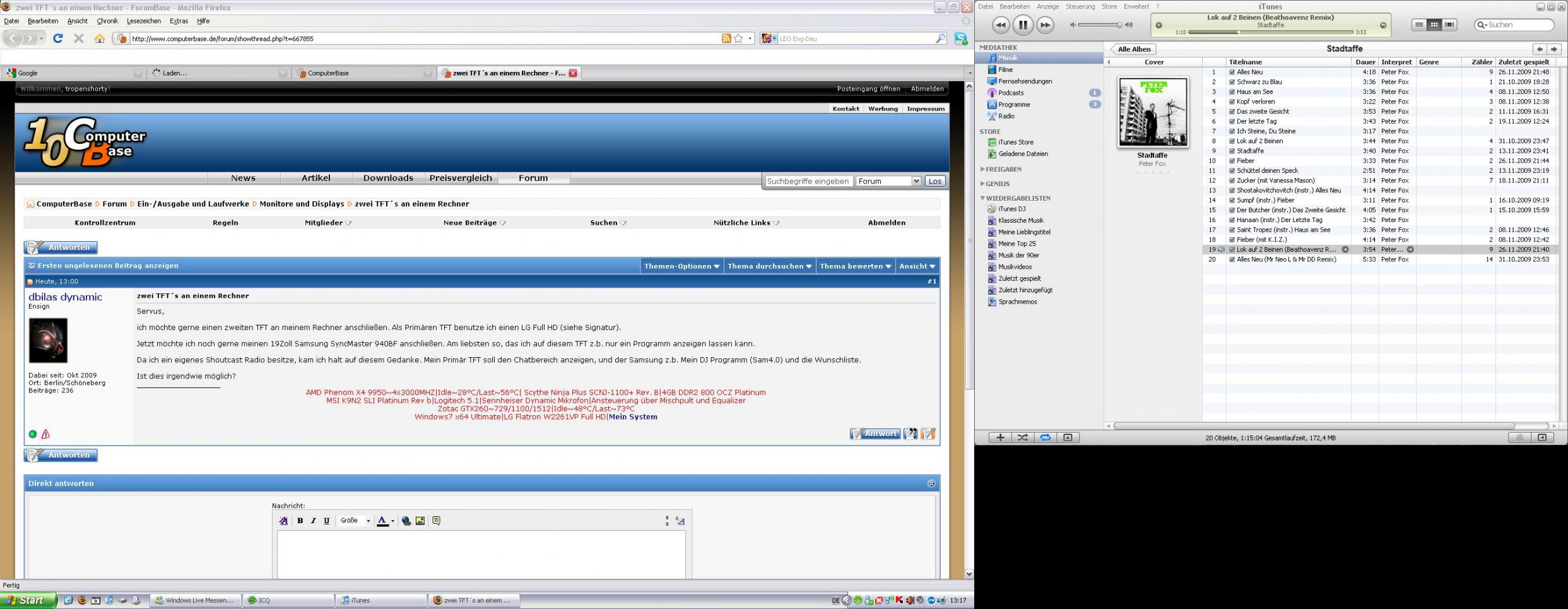 Da ich ein eigenes Shoutcast Radio besitze, kam ich halt auf diesem Gedanke. Mein Primär TFT soll den Chatbereich anzeigen, und der Samsung z.b. Mein DJ Programm (Sam4.0) und die Wunschliste.
