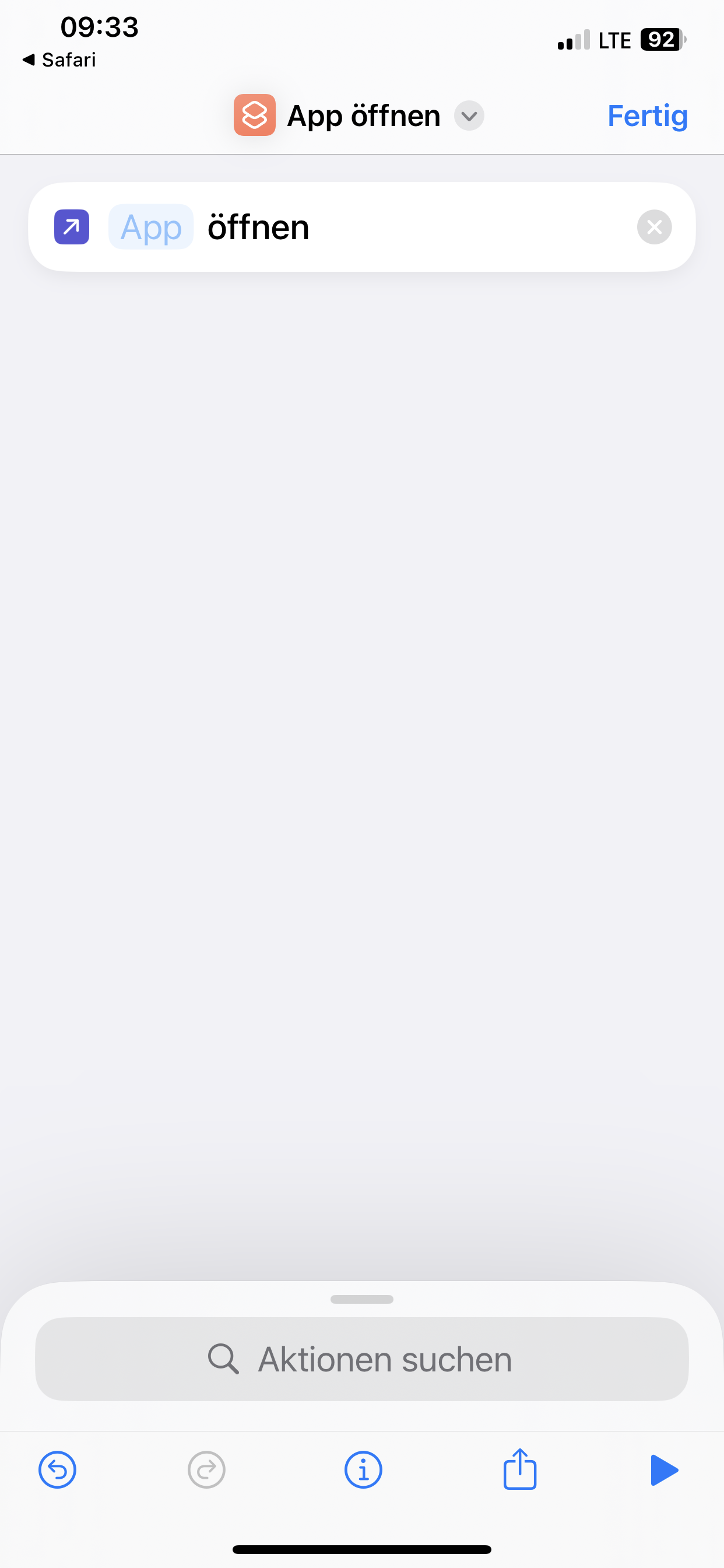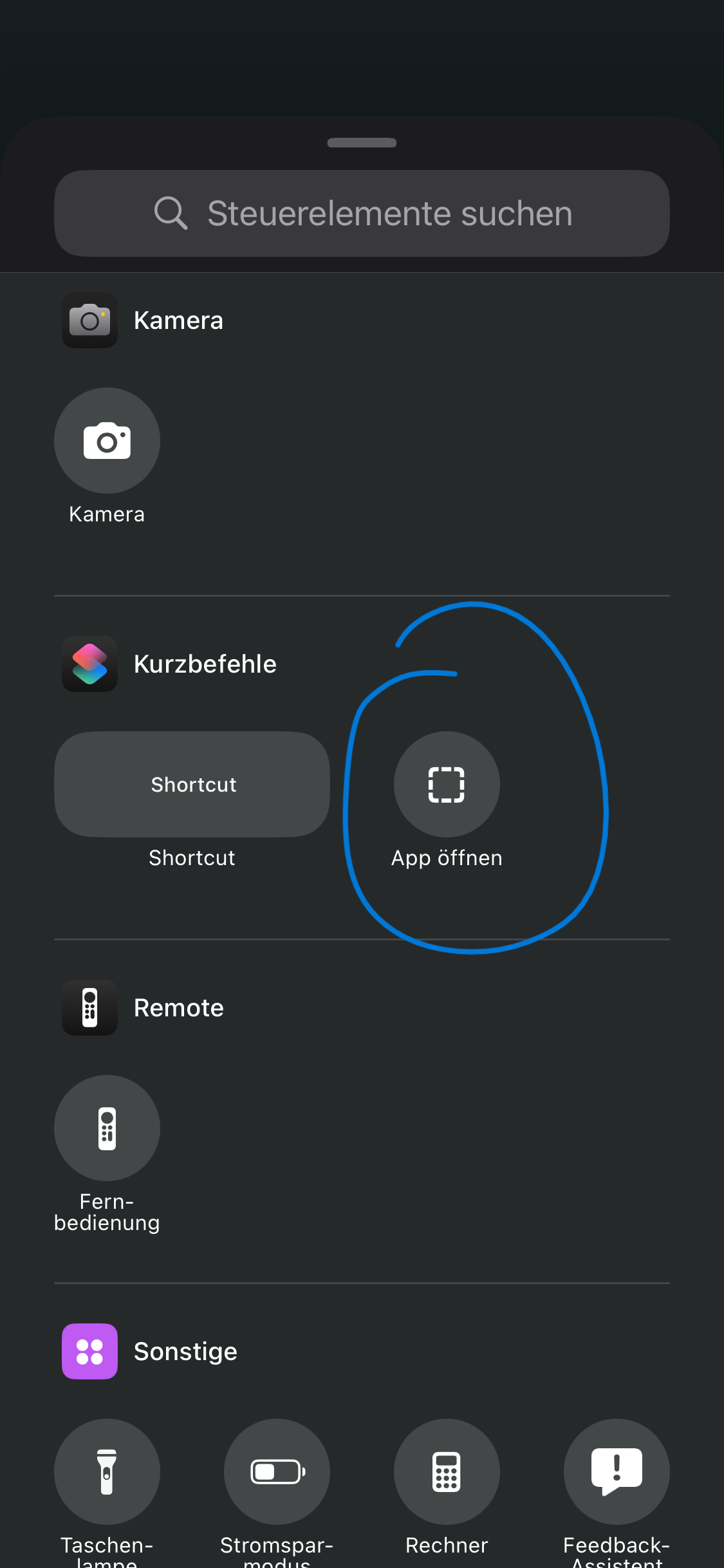 Im Kontrollzentrum unter Kurzbefehlen Shortcut auswählen, danach muss man auf den Shortcut und den entsprechenden Kurzbefehl auswählen. Alternativ erkennt er im Kontrollzentrum auch den Shrortcut "App öffnen", den auswählen und die App auswählen.