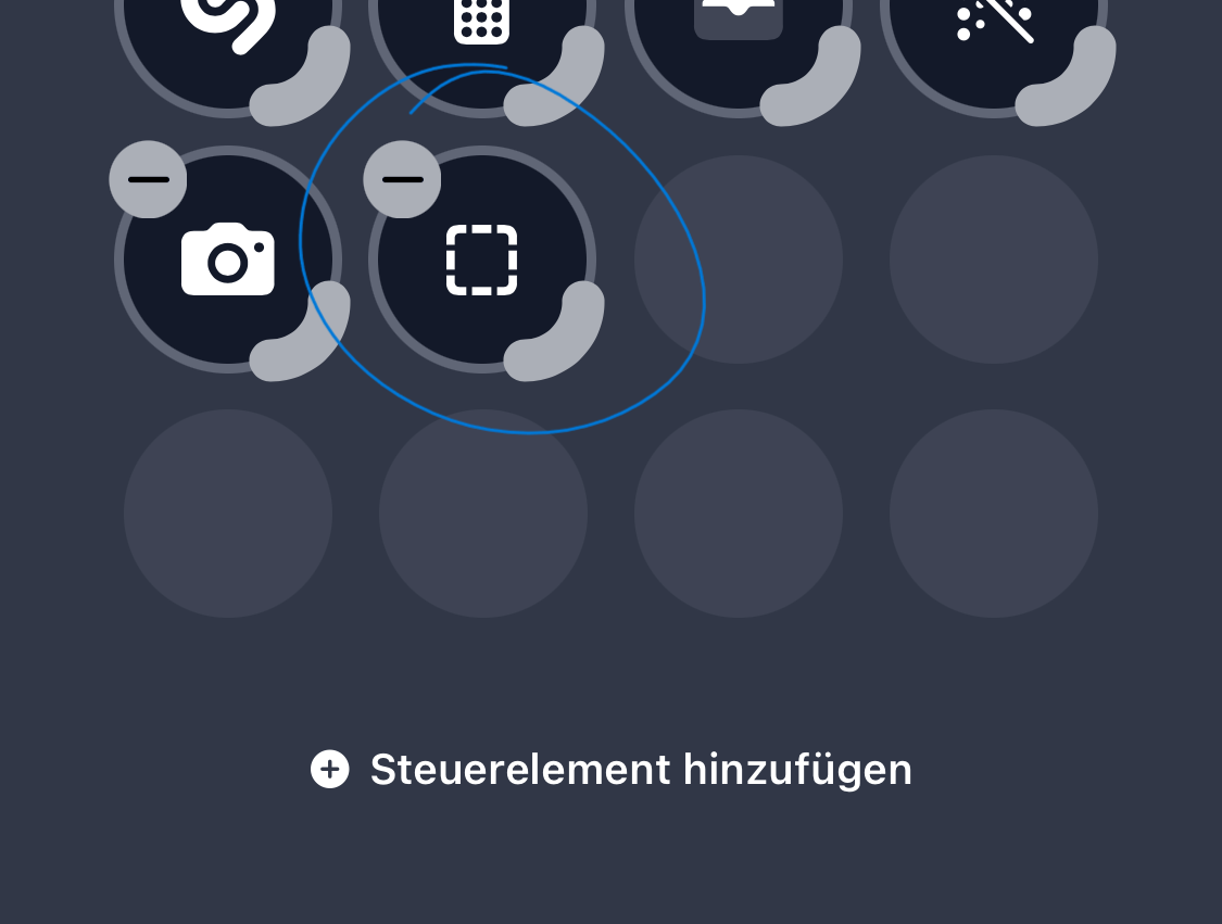 Bei deinem ersten Screenshot bist du einen Schritt zu weit. Geh in den Bearbeitungsmodus des Kontrollzentrums und dann ein kurzer Tipp auf das Symbol. Du hast jetzt vermutlich lang drauf getippt.