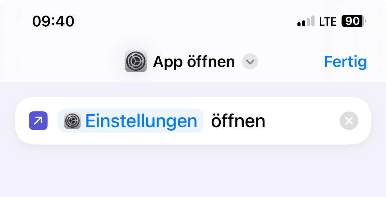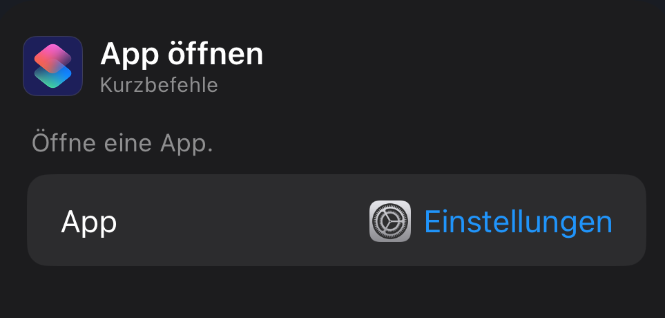 Bei mir geht es auch. Kurzbefehl "App öffnen" erstellen und als App die Einstellungen wählen.
