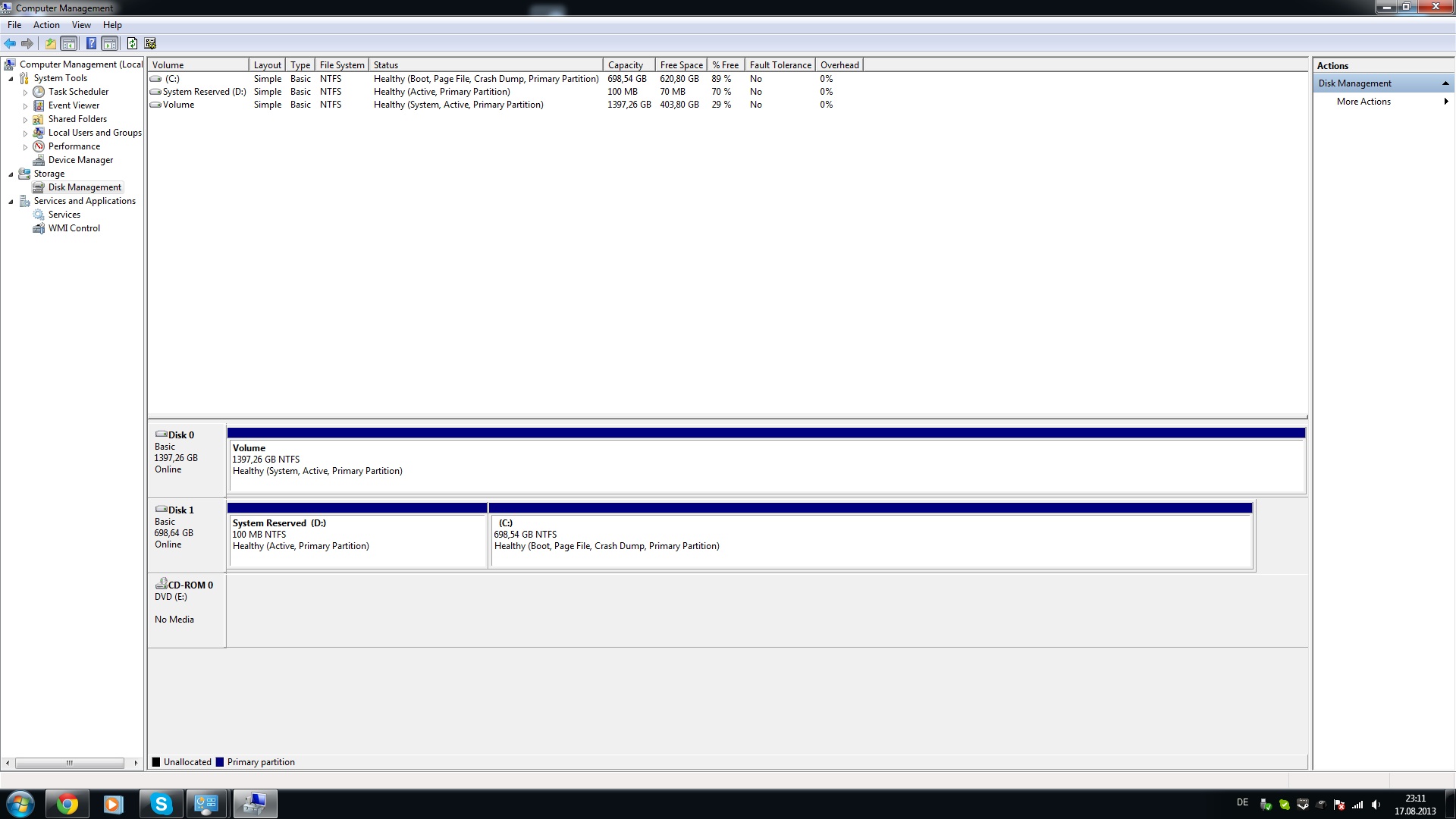 Meine Platte C: wird erkannt, dort ist auch Windows drauf, meine ehemalige Externe Volume I wird hingegn nicht im Arbeitsplatz angezeigt.