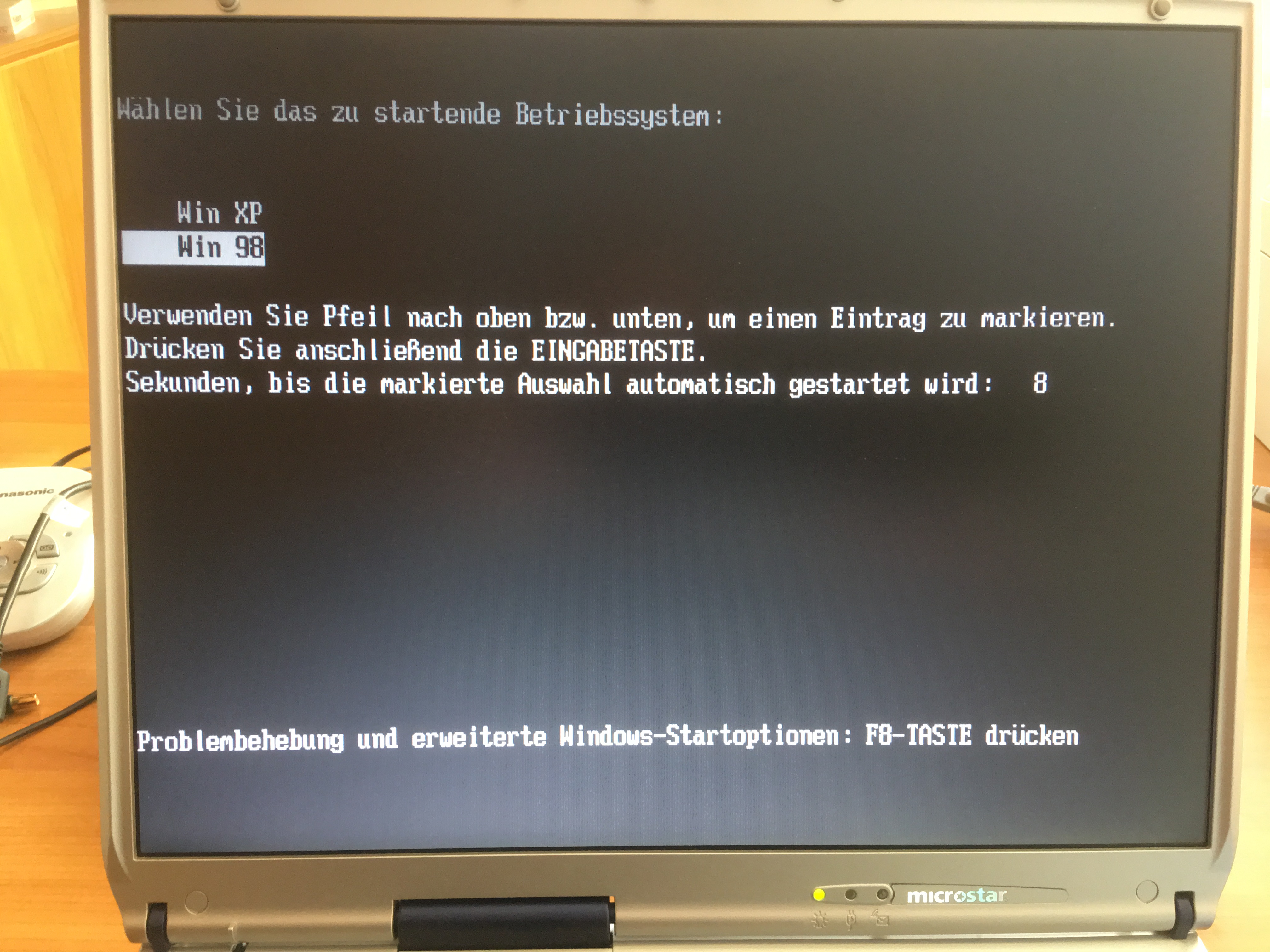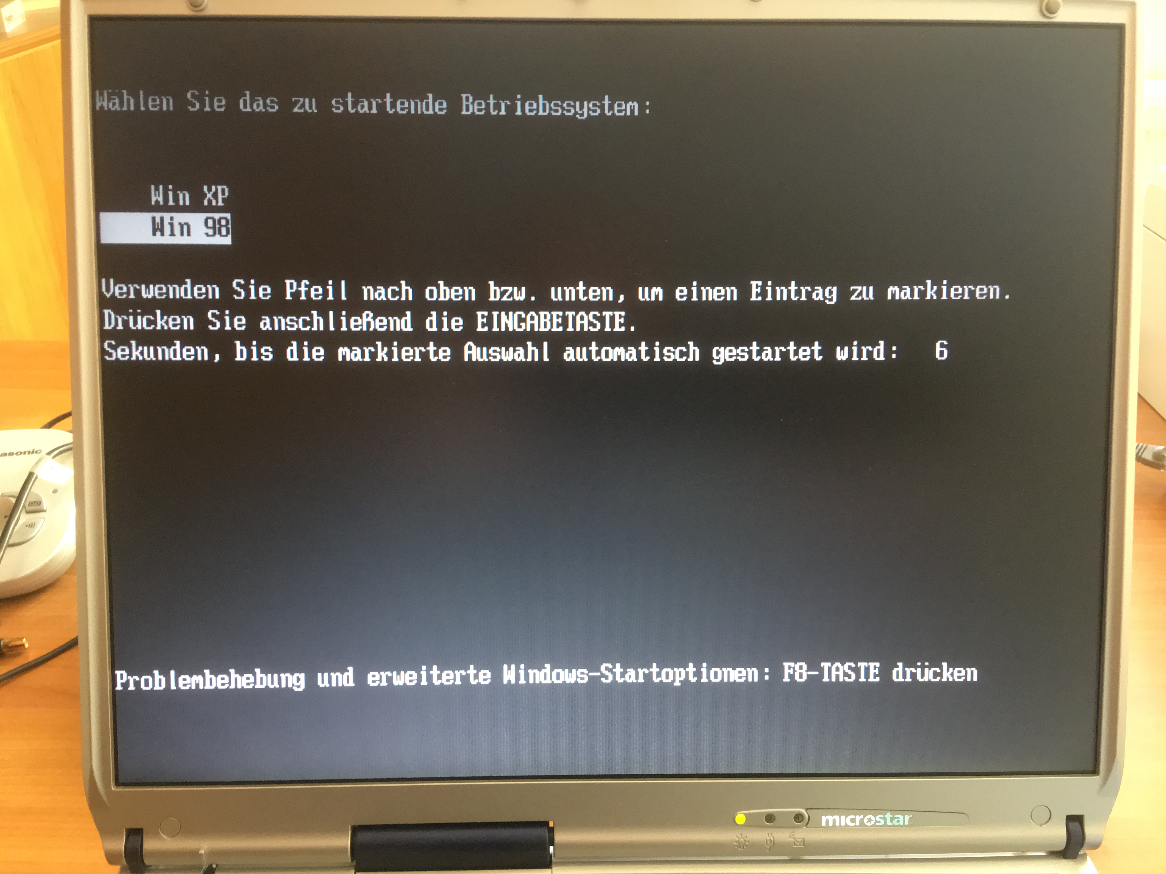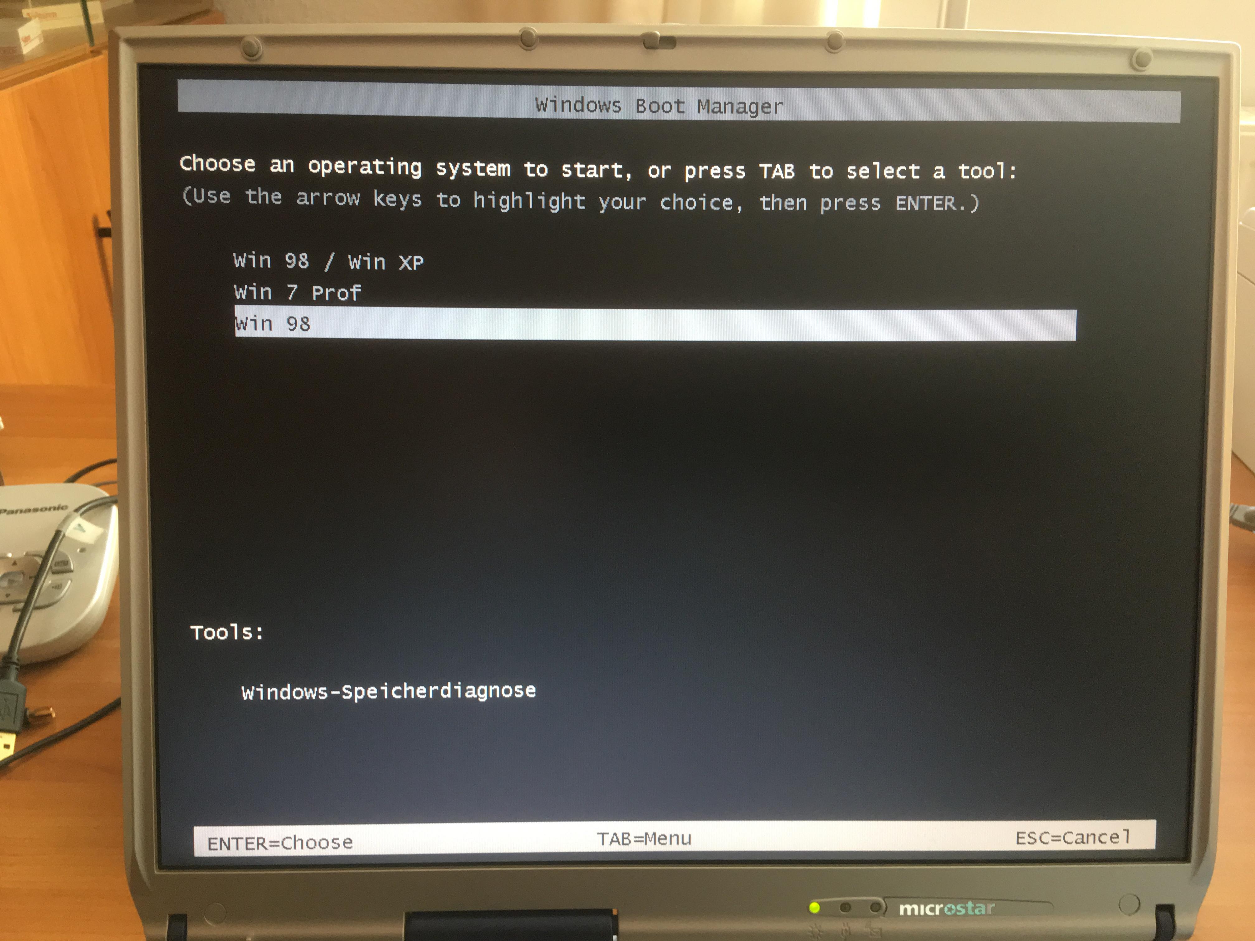 Nun taucht im Bootmenu von Win 7 ein Eintrag "Win 98" auf, der Win 98 nicht startet (s. Abb.)