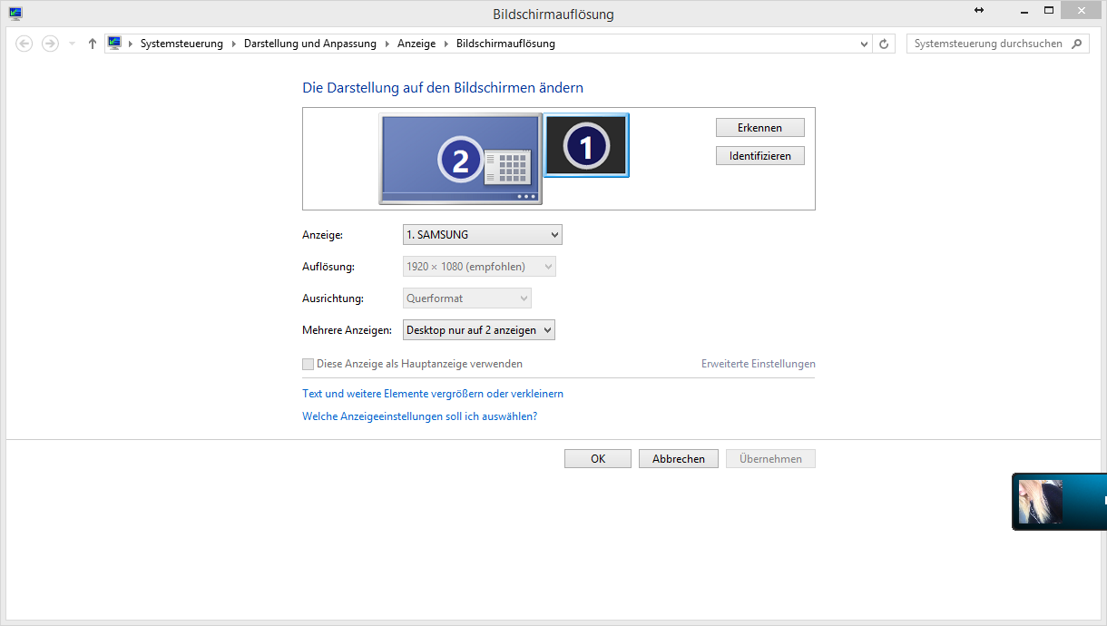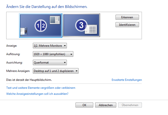 ich habe seit längerem das Problem, dass ich meinen PC Bildschirm als Hauptanzeige machen will. Das funktioniert leider nicht. Das Feld dafür ist grau hinterlegt: