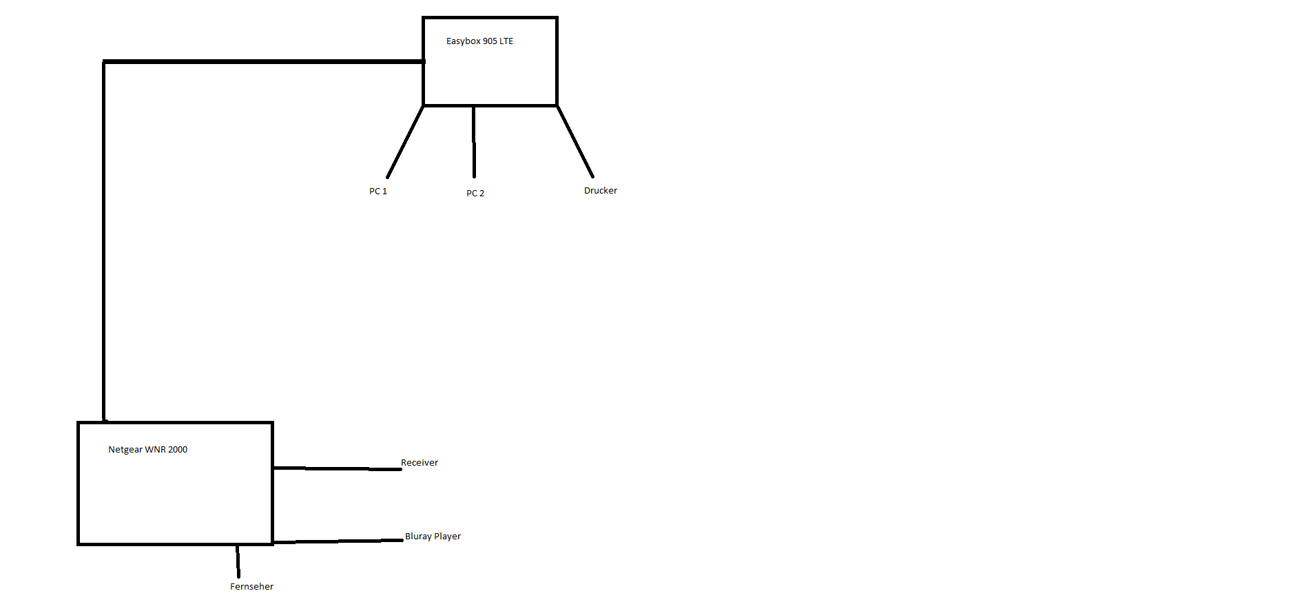 Habe dann ein Zwanzig Meter Lankabel verlegt und einen zweiten Router angeschlossen ( Bei der Easyboy alle Ports einmal durchprobiert also 1-4) und bei dem zweiten Router ( Netgear WNR 2000) das Kabel in den WAN Port gesteckt.
