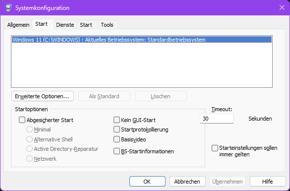 Ich hatte kurz den neuen Aomei-Tool installiert, mit dem man ein Restore beim Booten und Anklicken einer neuen Zeile „Aomei“, ohne der CD durchführen konnte. Dieses Tool habe ich deaktiviert, da ich ihn als Ursache verdächtige.