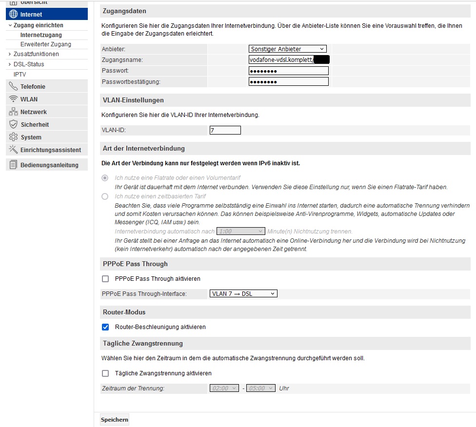 Ich habe dazu mal folgende Bilder hochgeladen: Vodafonezugangsdatenblatt (Kundendaten geschwärzt) und die Einrichtungsmaske vom Router: