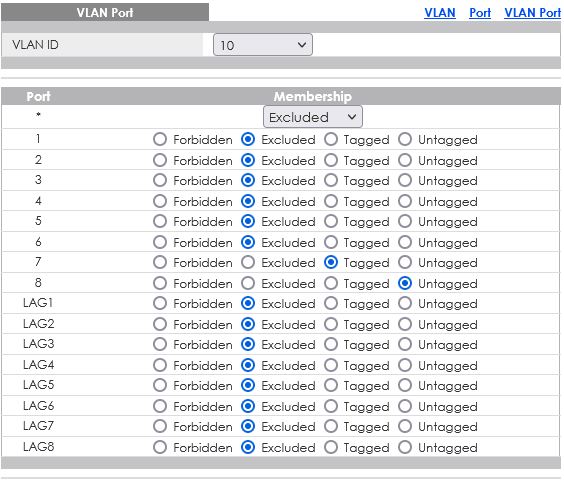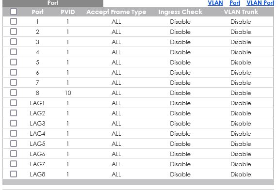 Also ich habe anscheinend das Problem gefunden... Ich habe im Switch vergessen bei VLAN unter dem Menüpunkt "Port" die PVID für den Port 8 von 1 auf 10 zu stellen. (siehe Foto)