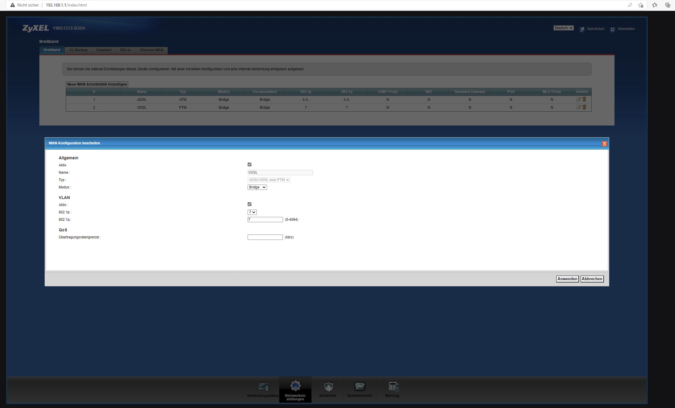 Netzwerkkabel von LAN 1 der Fritzbox zum LAN 1 Port vom Zyxel??? Das kann doch nicht stimmen?
