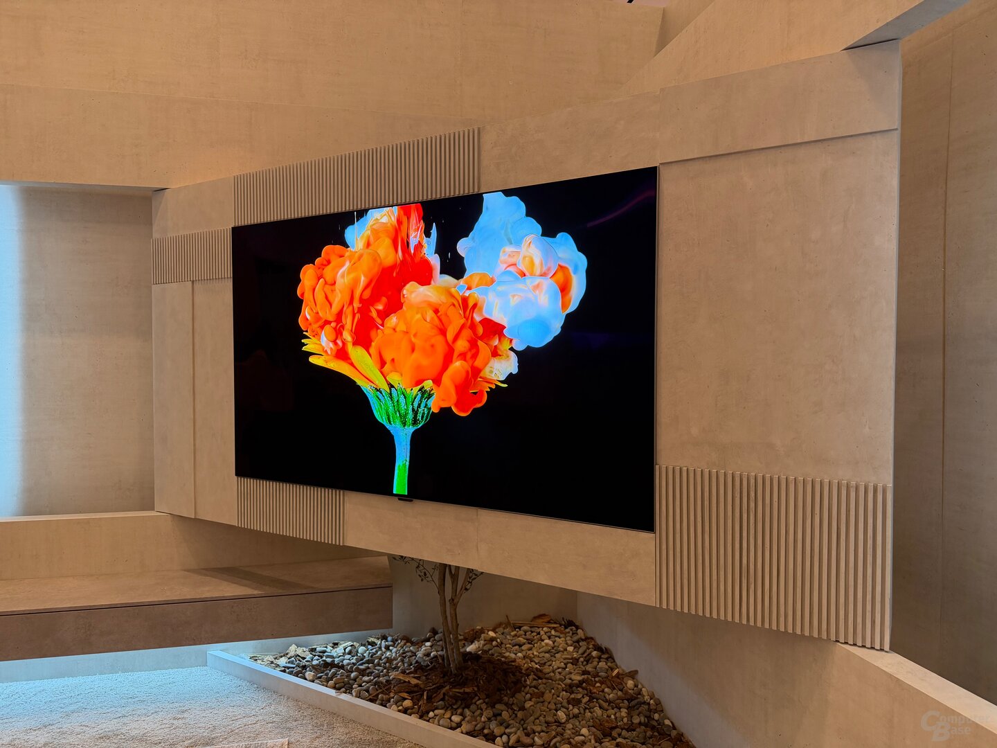 Im Gegensatz zu den halbmatt ausgeführten „Glare free“-Panels der neuen QD-OLED-Fernseher von Samsung kommen die LG-Fernseher mit traditionell glänzender Oberfläche, die mittels „Reflection Free Premium“ aber dennoch weniger Reflexionen wie etwa von Lichtquellen im Raum zulässt als die vorherige Generation.