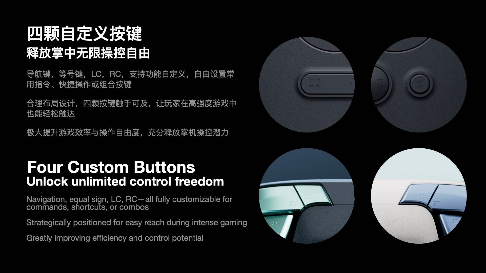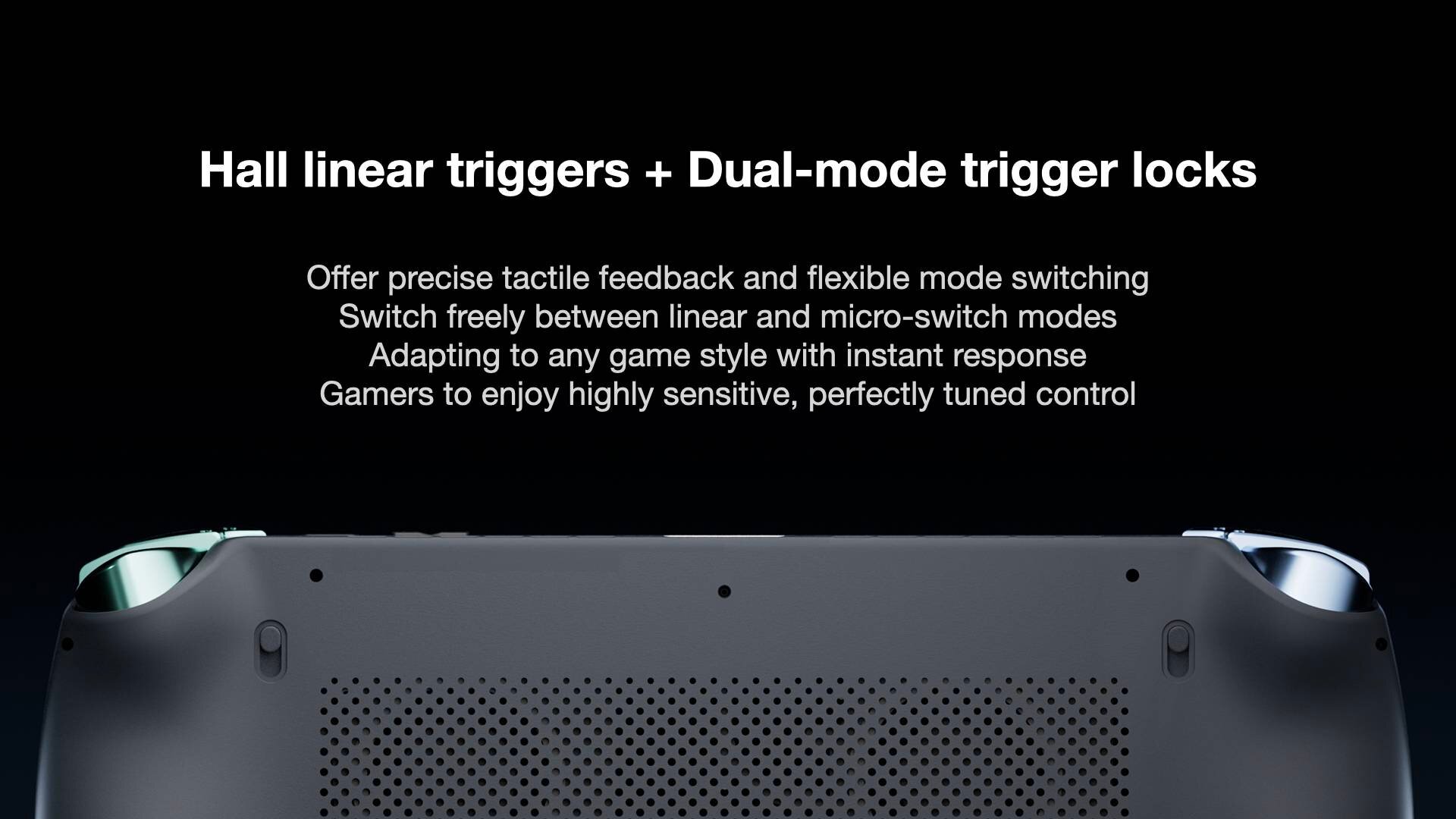 Bei den Eingabegeräten setzt der Next II auf Hall-Joysticks und Hall-Trigger, die Hall-Sensoren zur Erfassung der Position verwenden. Diese Sensoren messen Magnetfelder und können dadurch sehr präzise und verschleißfrei erkennen, wie weit der Stick oder Trigger bewegt wird. Wie beim Ayaneo 3 lassen sich die Trigger im Dual-Mode entweder linear oder als schneller Micro-Switch nutzen. Hinzu kommen beim Next II zwei konfigurierbare Touchpads und ein 8-Wege-D-Pad auf der Vorderseite. Auf der Rückseite sind jeweils zwei weitere Tasten pro Hand verbaut.