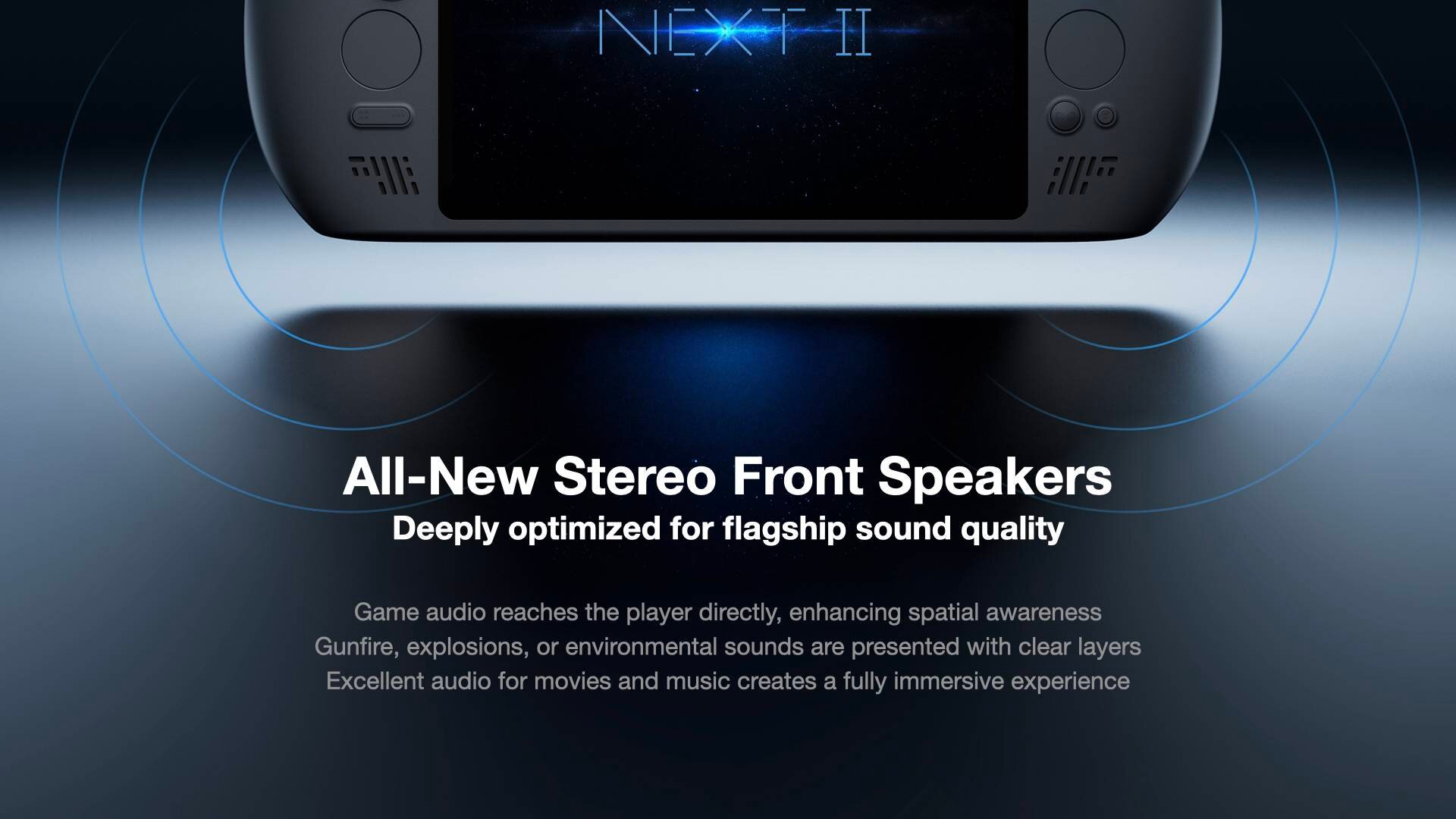 Ein hochwertiger Vibrationsmotor soll für präzises haptisches Feedback beim Spielen sorgen, während zwei nach vorne gerichtete Stereo-Lautsprecher für die akustische Untermalung der Inhalte zuständig sind.